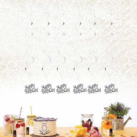 Silver Toyvian 6pcs Ceiling Hanging Decorations Happy Birthday