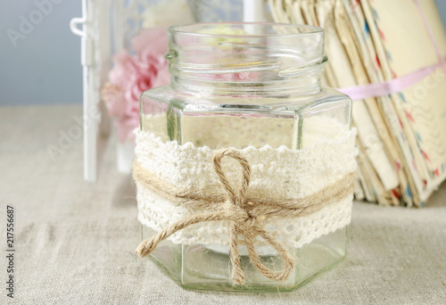 How Make Glass Jar Decorated Lace Stock Photo Edit Now 765095530
