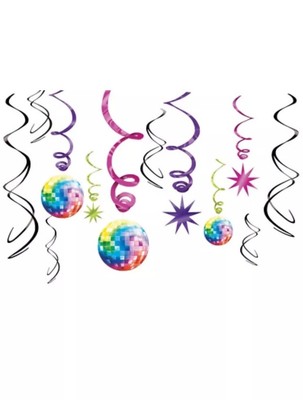 Disco Party Time Hanging Swirl Decorations 12 Birthday