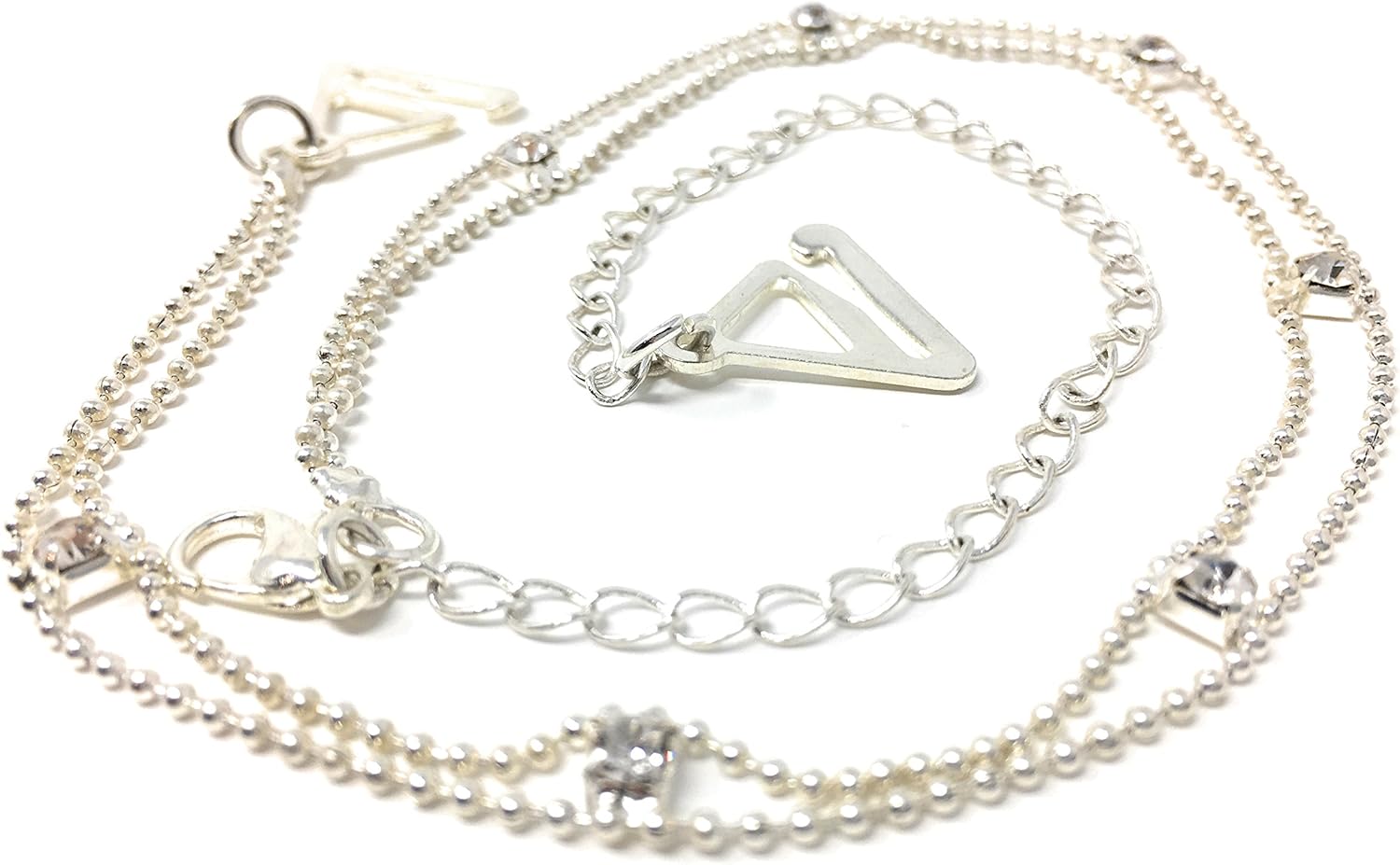 Decorative Bra Straps Silver Beads Triple Rows Adjustable Size