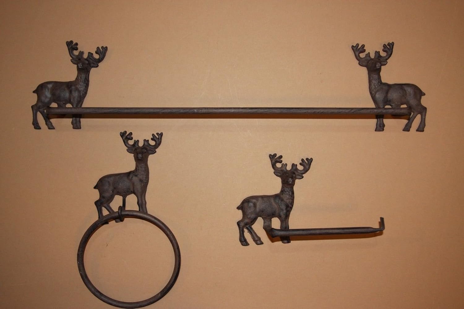 4 Pieces 8 Point Buck Deer Hunter Bathroom Decor Deer Towel Bar