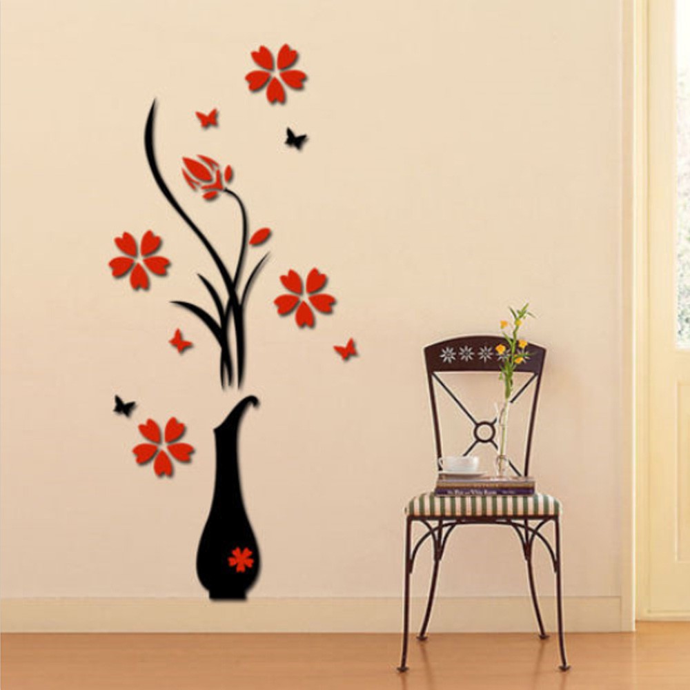 Easy Arcylic Wall Vase 3d Home Diy Decor Decal Stickers Flower