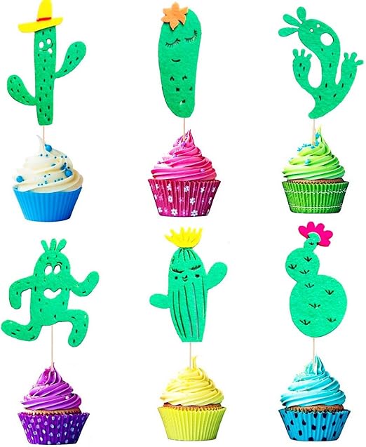 Baoblaze 12pcs Fiesta Cake Toppers Cactus Guitar Cupcake Toppers