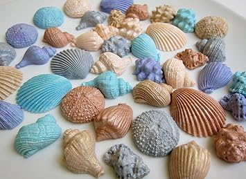 12 Hand Colored Edible Seashells Wedding Cake Topper For