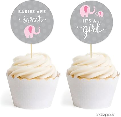 Elephant Baby Shower Cupcake Toppers Baby Girl Shower Ideas