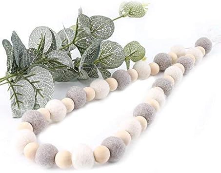 Wooden Beads Wool Ball 30pcs Garland Nursery Decor Farm To Table