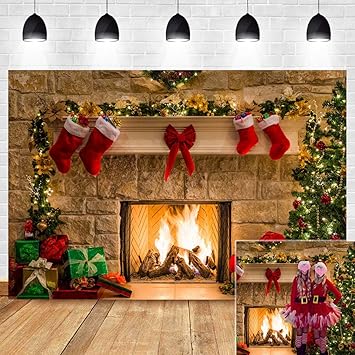 Amazon Com 8x6ft Fireplace Holiday Photography Backdrop Photo