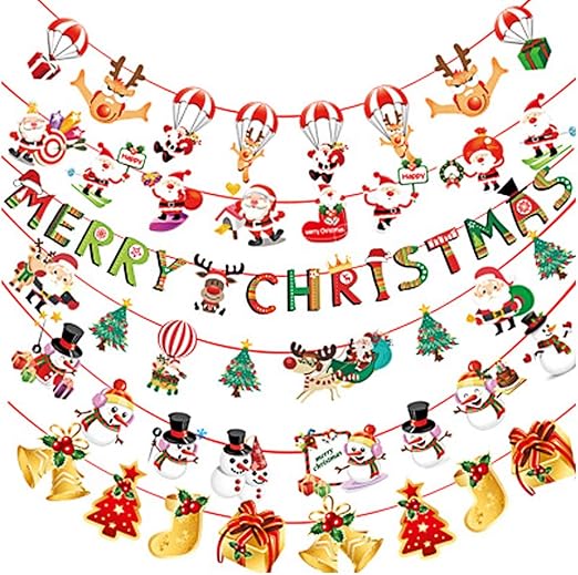 Amazon Com Jelacy Christmas Banners Cartoon Paper Flag Bunting