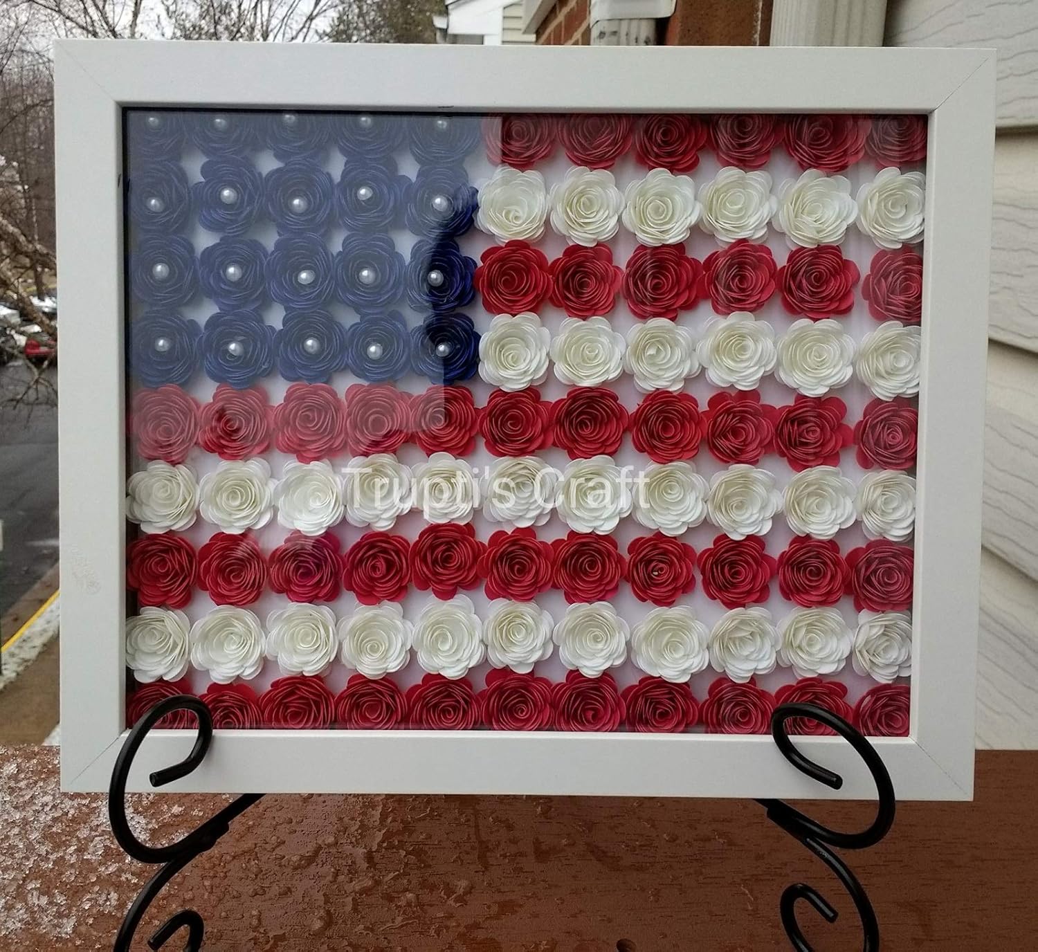Amazon Com 3d Paper Flowers American Flag Frame Wall Decor Home