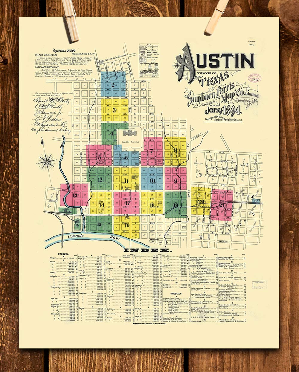 Framed Map Poster Of Austin Texas Map Art Travel Decor Mapprints