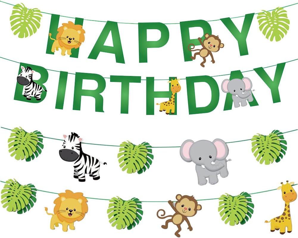 Amazon Com Jiahai 34pcs Jungle Animals Leaves Happy Birthday