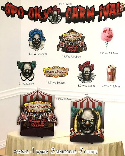We carry scary clowns and clown accessories halloween carnival games and creepy carnival tableware.