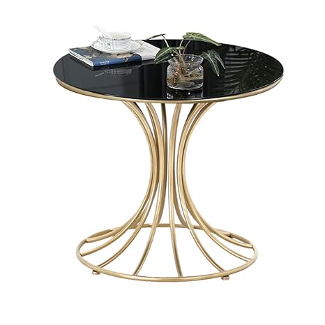 Jhbw Black Tempered Glass Coffee Table Round Structure Gold