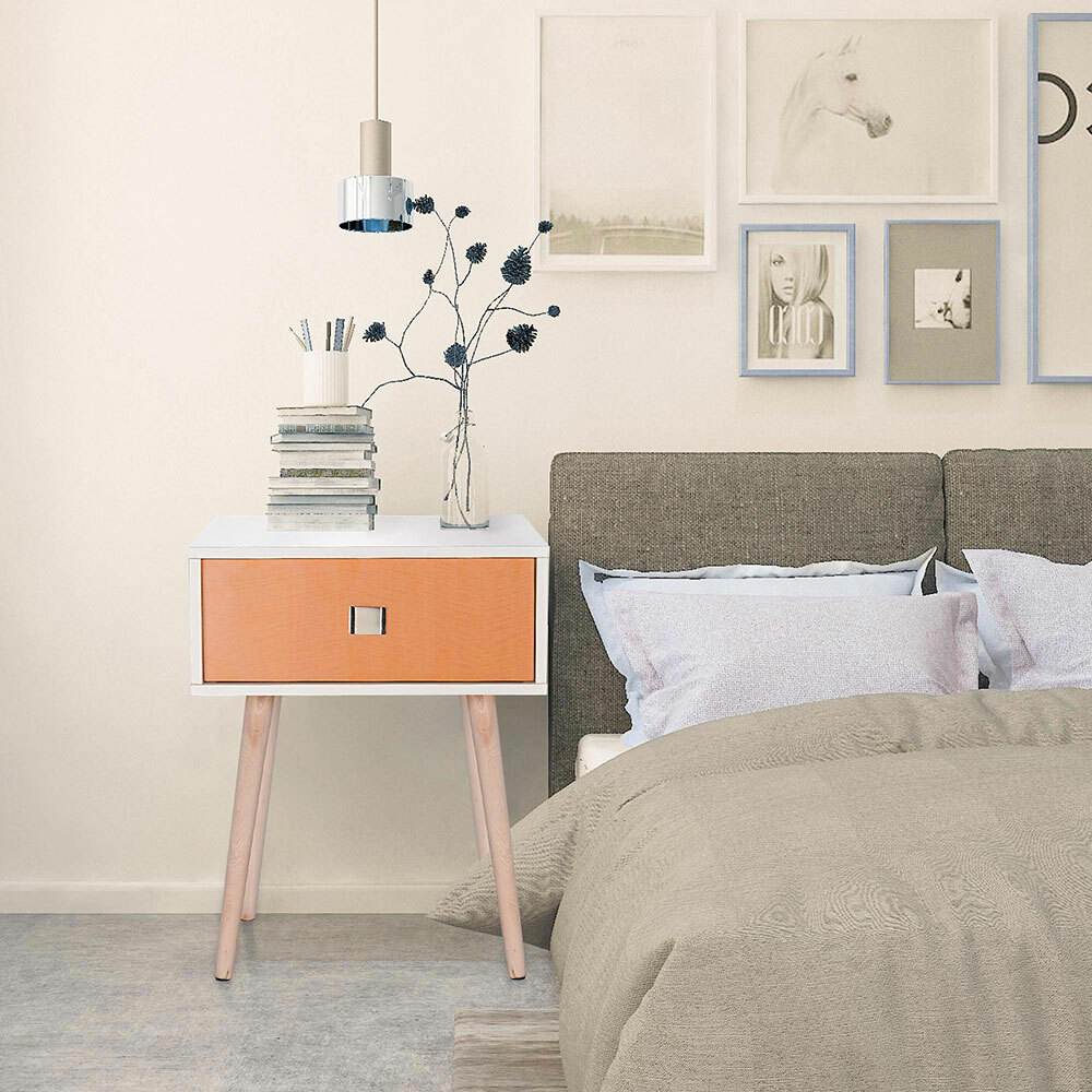 White Modern Bedroom Decor 1 Drawer Bedside Table Nightstand End