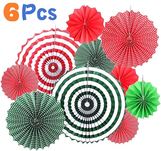 Amazon Com Christmas Style Hanging Paper Fan Decorations 6 Pcs