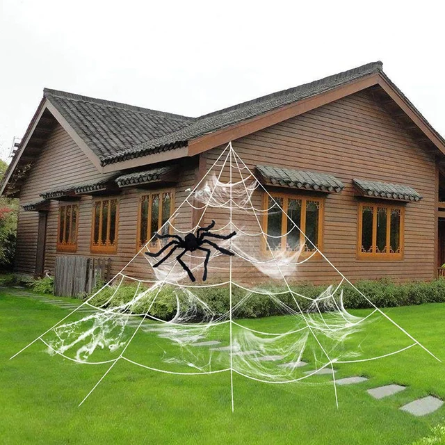 Pbpbox Halloween Giant Spider Web Set For Outdoor Yard Decorations