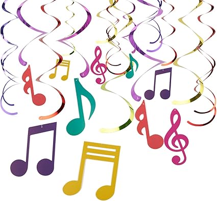 Howaf Music Note Multi Coloured Hanging Swirls Decorations 30pack