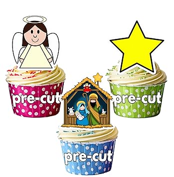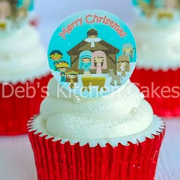 Decorations Cake Toppers 24 X Merry Christmas Nativity Edible