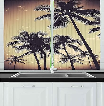 Amazon Com Ambesonne Tropical Kitchen Curtains Coconut Palm Tree