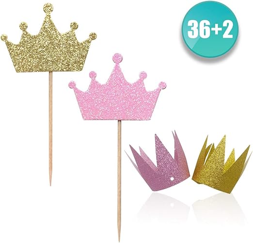 Hapy Shop Glitter Pink And Gold Crown Cupcake Toppers 48 Pieces