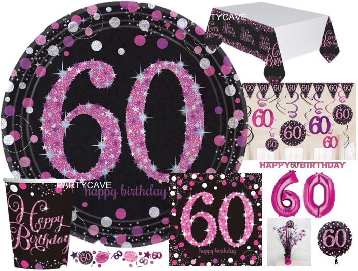 60th Pink Black Celebration Birthday Party Balloons Tableware