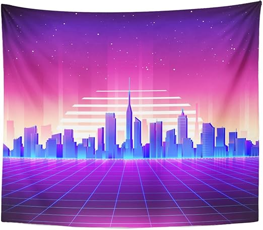 Amazon Com Emvency Tapestry 80s Retro Sci Fi Night City Skyline