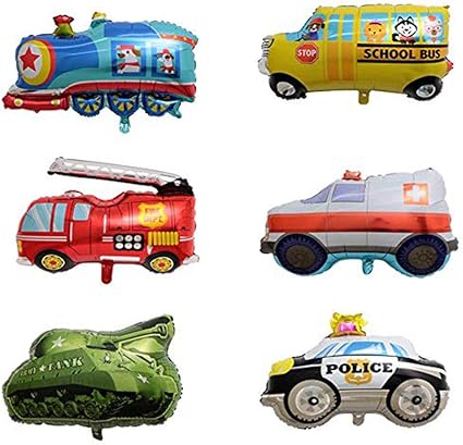 Balonar 7pcs Train Ambulance Police Car School Bus Fire Truck Tank