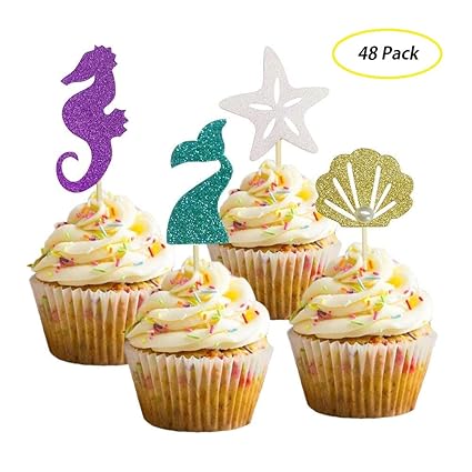 60 Pieces Mermaid Theme Glitter Cupcake Toppers Cake Picks Include
