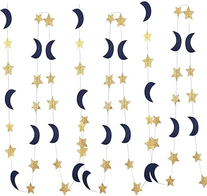 Decor365 Gold Star Moon Garland Kit Hanging Garands Streamers