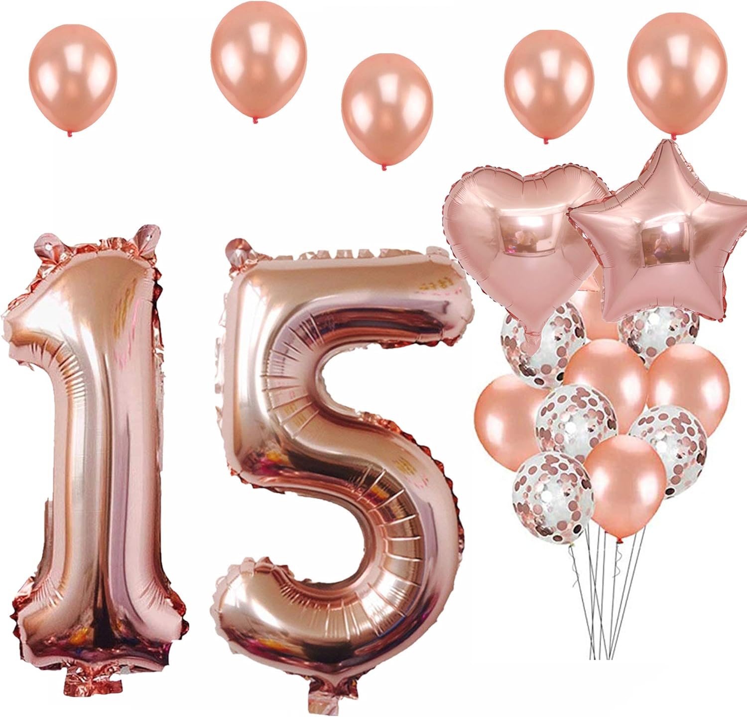 Sweet 15th Birthday Decorations Party Supplies Rose Gold Number 15