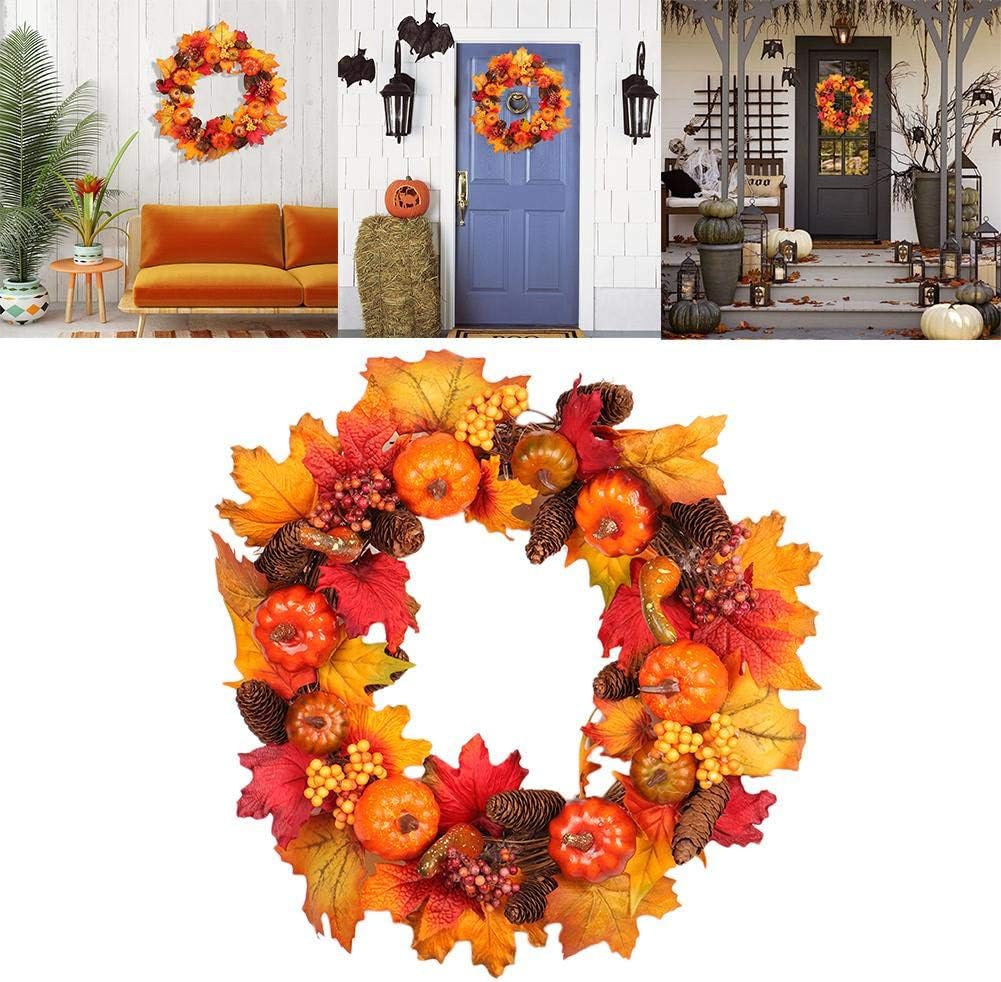 Autumn Maple Leaf Pumpkin Wreath Thanksgiving Halloween Front Door