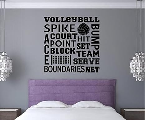 Volleyball Sports Decor Vinyl Decal Wall Sticker Words Lettering