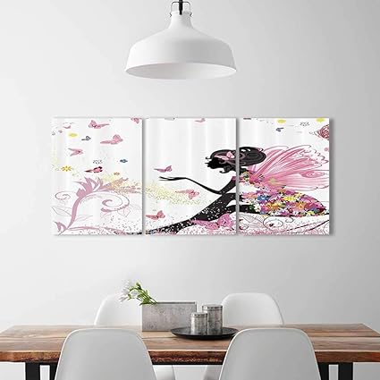 Shuaxin 1 Piece Wall Art Girl In Blue Dress And Butterfly Flying