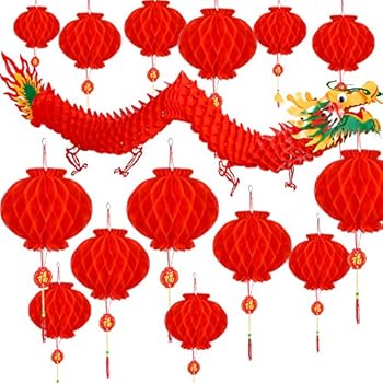 Bememo 21 Pieces Chinese New Year Dragon And Chinese Red Lanterns