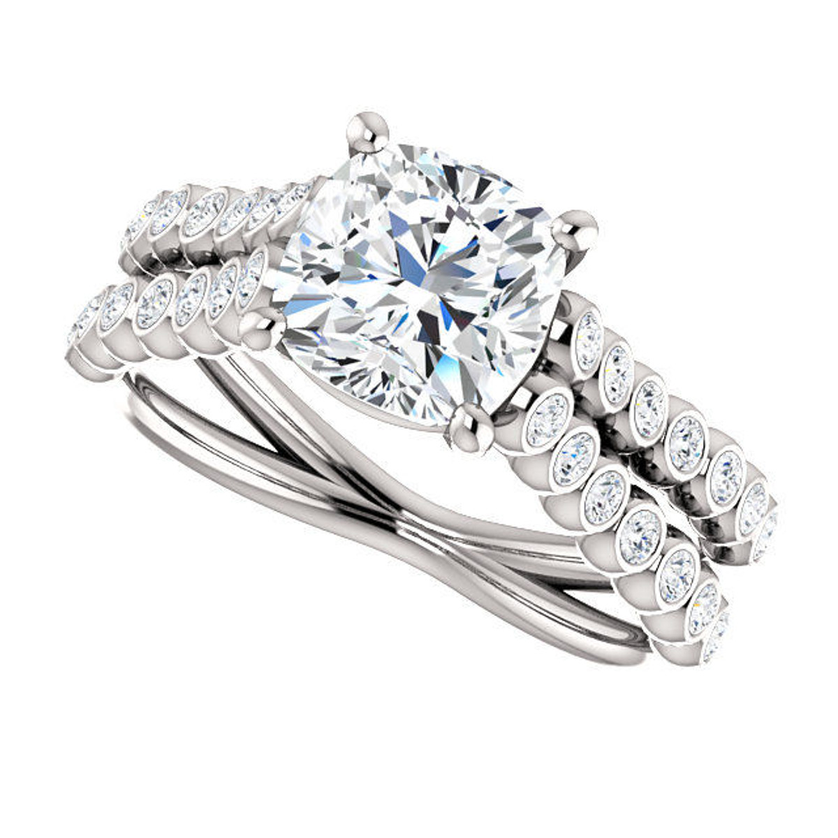 2 31 Carat Cushion Cut Pave Engagement Ring In 14k White Gold